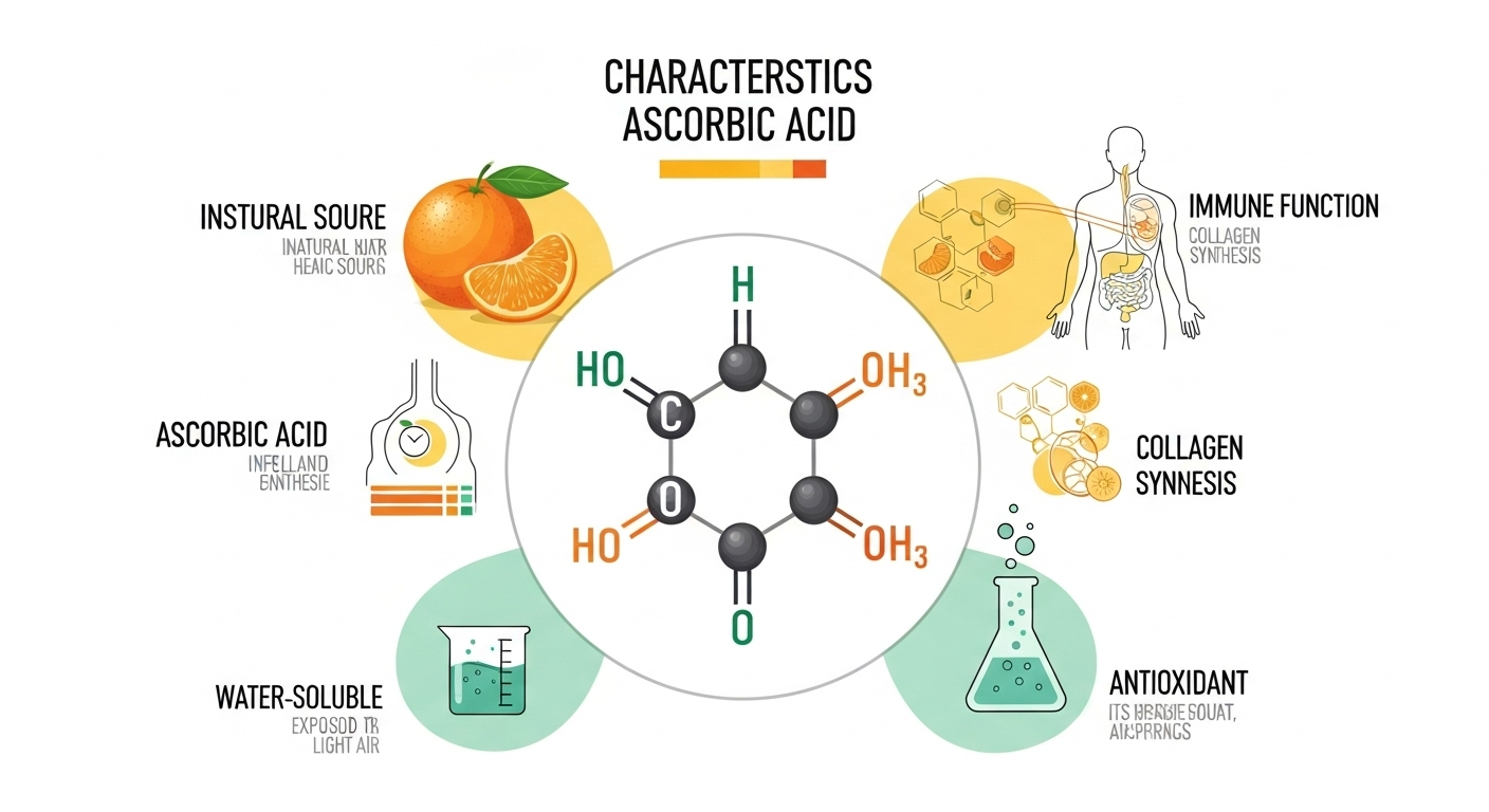- نقش منحصر به فرد: در اینجا، اسید آسکوربیک نقش یک “مهندس سازه” را دارد. وظیفه اصلیاش، کمک به ساخت کلاژن است که ستون فقرات پوست، استخوانها، عروق خونی و بافتهای همبند ماست. بدون کلاژن، بدن ما مثل یک ساختمان بدون سیمان فرو میریزد. همچنین، به عنوان یک “تقویت کننده سیستم ایمنی” عمل میکند، انگار که سربازان دفاعی بدن را آموزش میدهد و آمادهباش نگه میدارد.