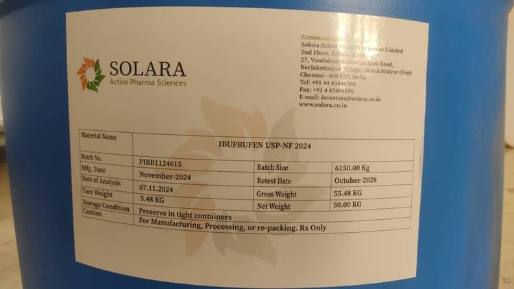 ایبوپروفن برند سولار هند بشکه 50 کیلوگرم