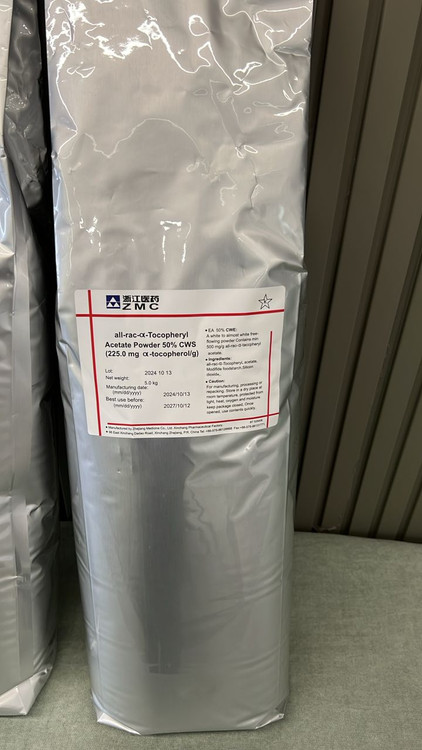 همچنین در مکملهای خوراکی، افزودن ویتامین E استات باعث پایدار ماندن ویتامین E طبیعی در طول انبارداری میشود.