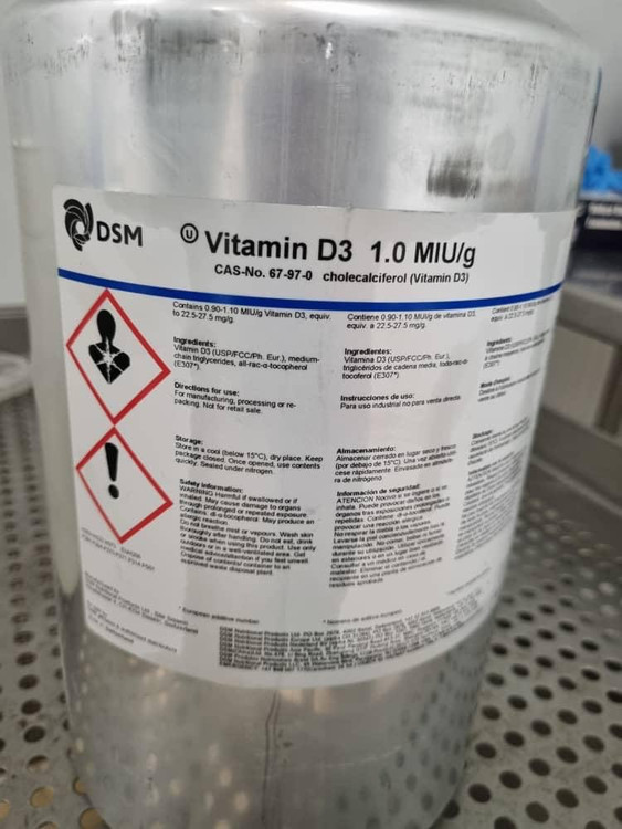 ویتامین D3 یک میلیون واحد محلول در روغن برند DSM هلند پک 5 کیلوگرم