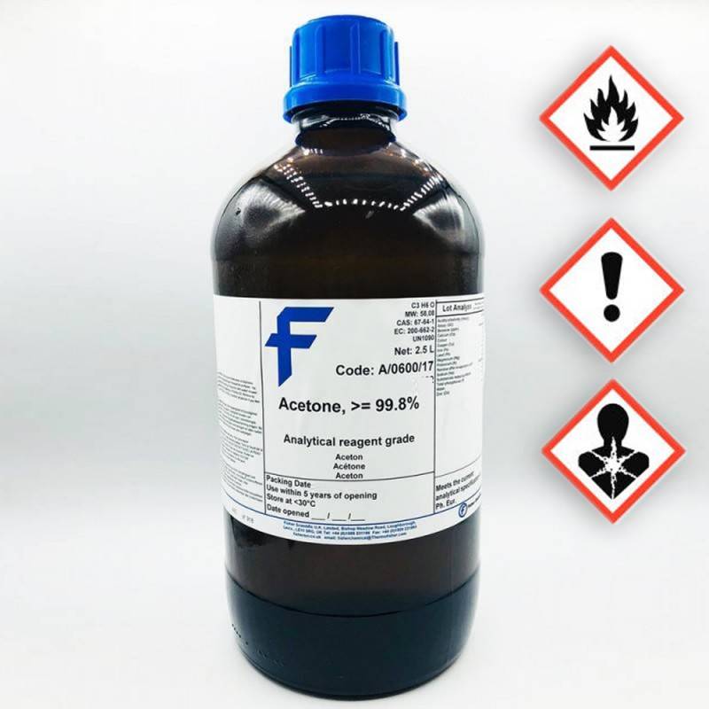 - ویژگیها: برند دیگری که به طور گسترده در دنیای علم شناخته شده است. استون آزمایشگاهی Fisher Scientific نیز در گریدهای مختلف و با کیفیت بالایی عرضه میشود. اغلب در بستهبندیهای ایمن و مناسب برای آزمایشگاهها موجود است.